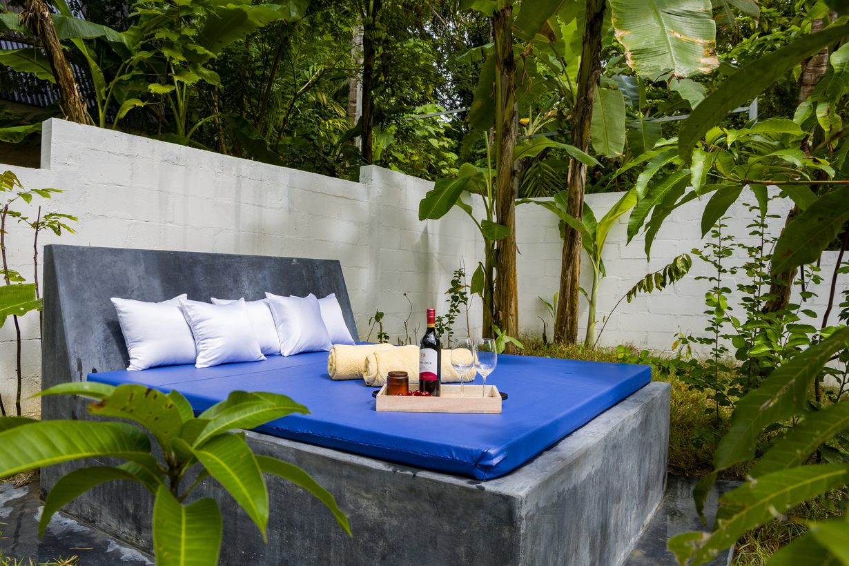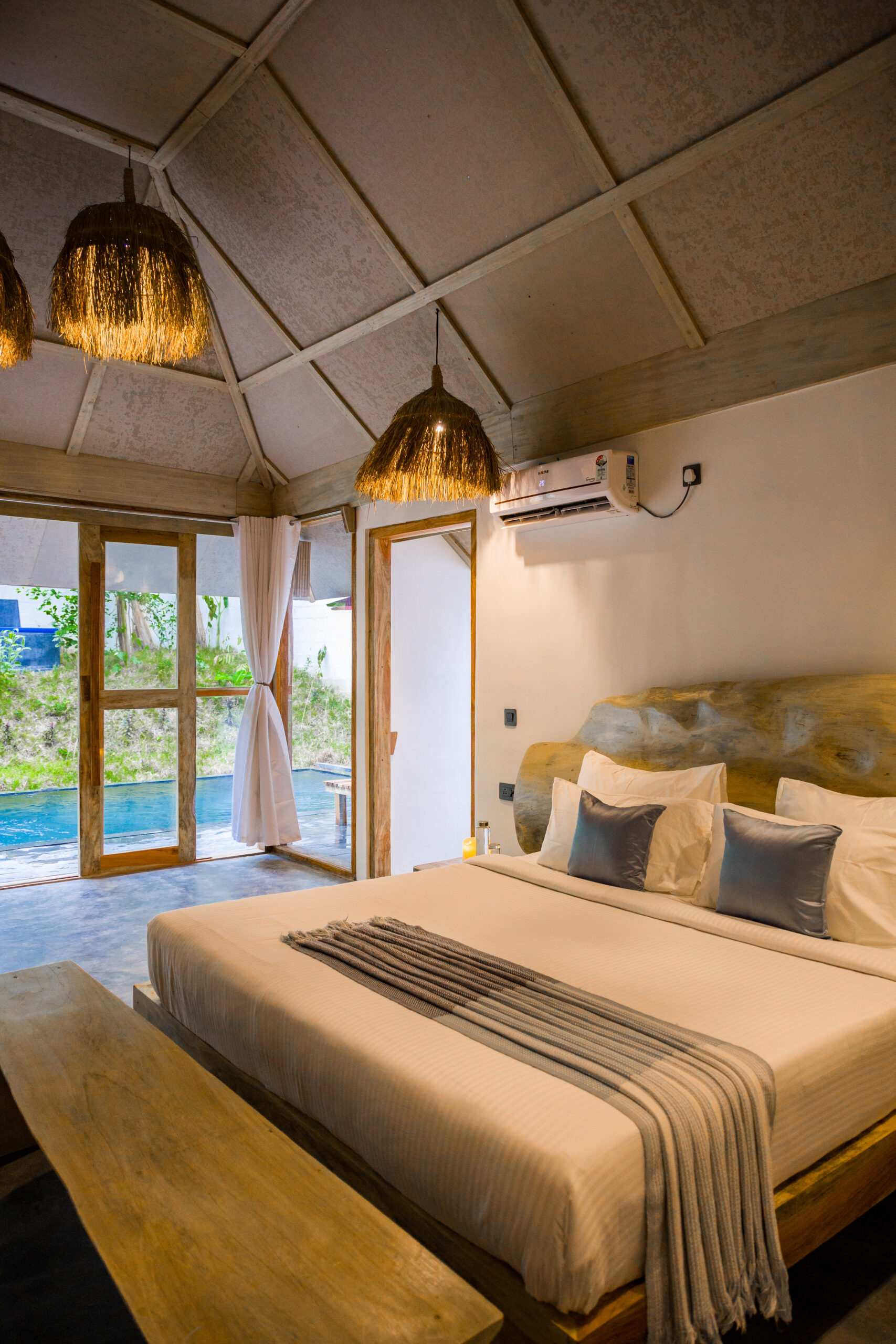Unwind in our two private pool garden villas. Thoughtfully designed with an open-plan layout, each villa features a private pool framed by elegant sun loungers, a serene garden daybed, and an outdoor shower. Spanning 2000 sq. ft. of living space and lush garden area, these villas offer the perfect setting for intimacy, relaxation, and rejuvenation in complete seclusion.